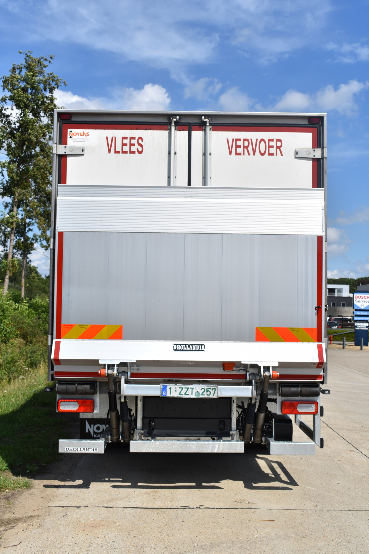 Risa kan hun nieuwe wagen inzetten voor het transport van hangend vlees! Het hulpchassis, lichtkasten en spatborden werden thermisch verzinkt. Een nieuwe Dhollandia laadbrug type DH-LMA.20 met 1.500 kg hefvermogen werd achteraan geplaatst.