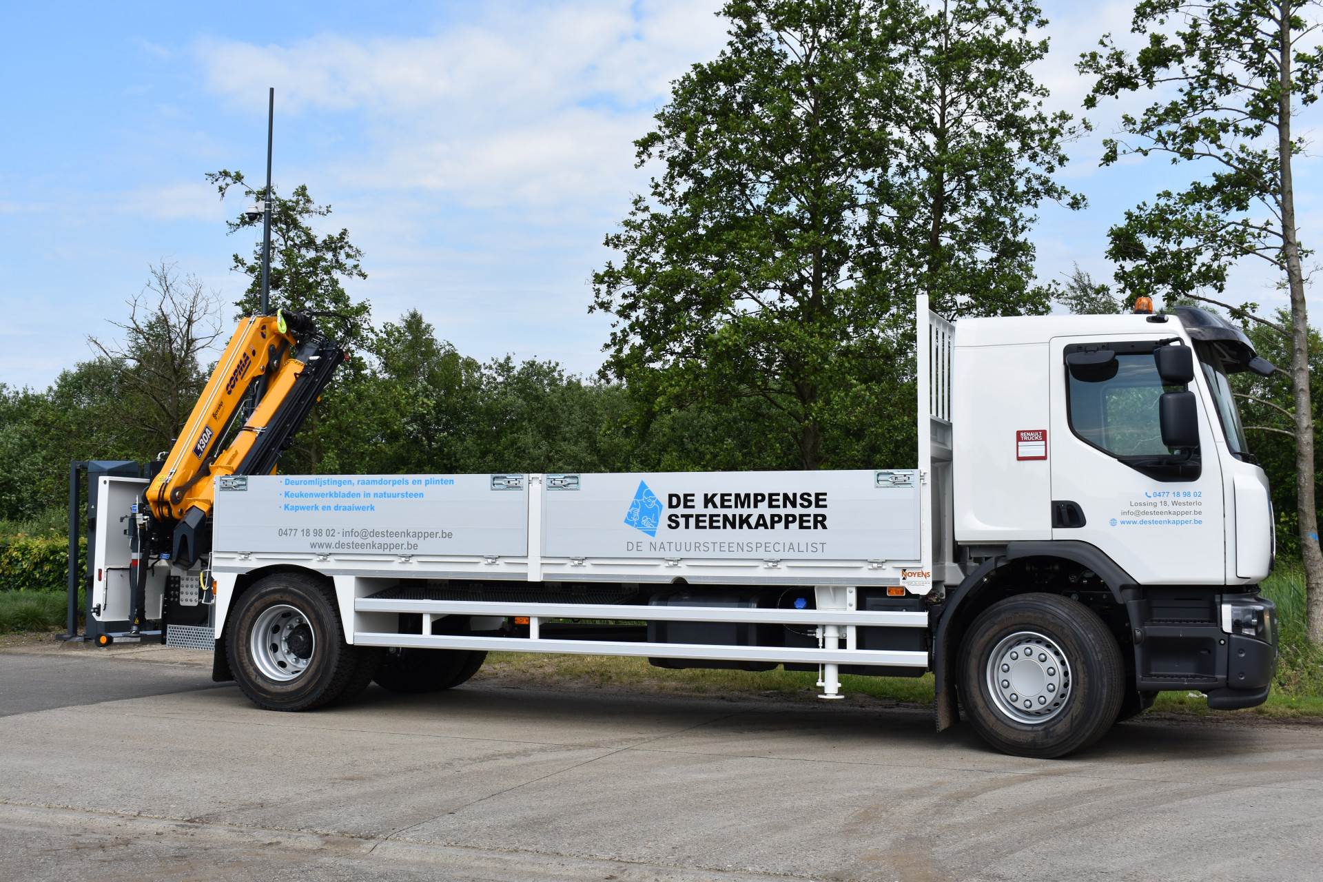 Voor De Kempense Steenkapper monteerden wij de COPMA laadkraan 130A.3 achteraan het chassis. De laadkraan is radiografisch bestuurd en voorzien van een rotator.