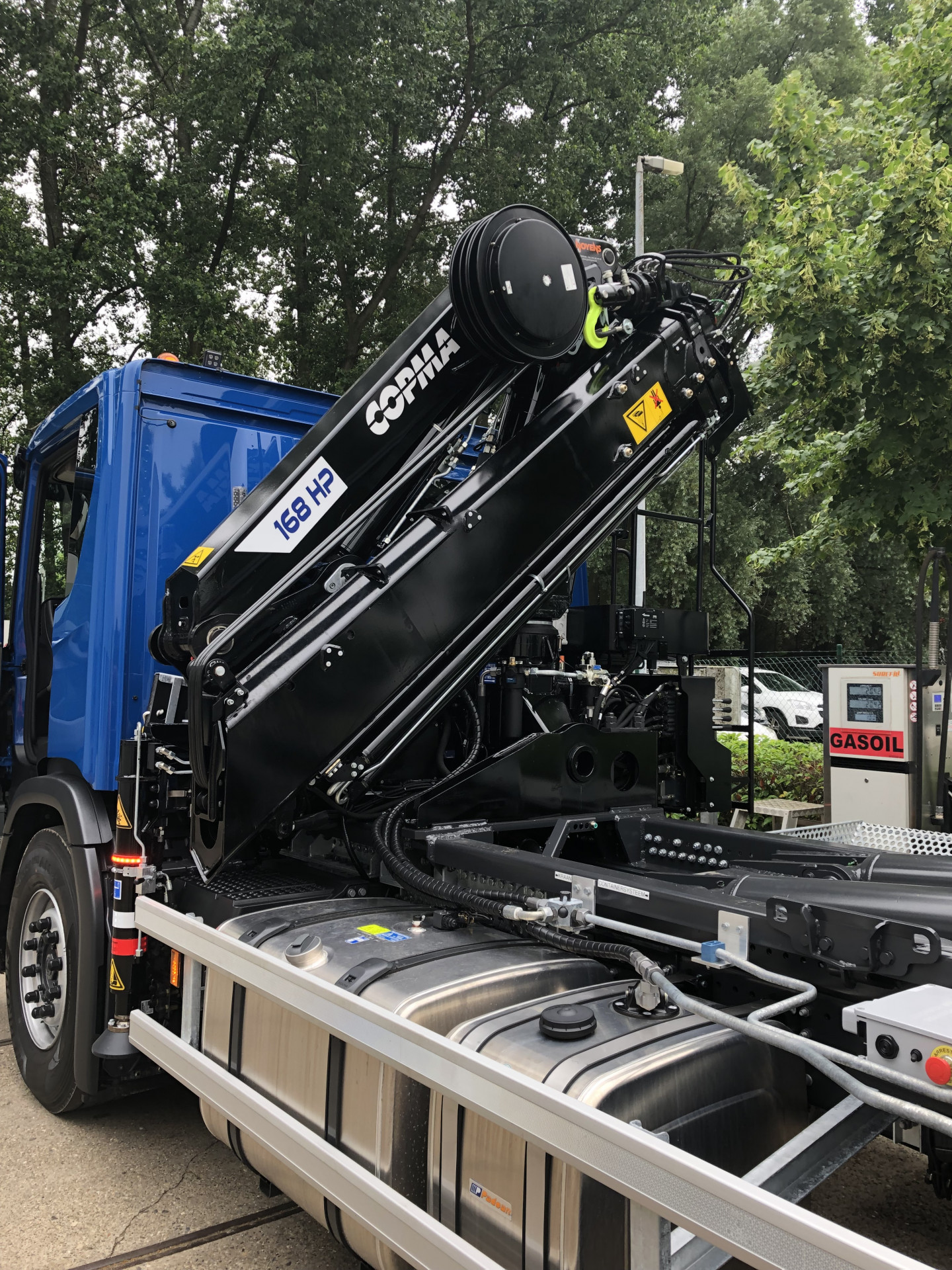 Laadkraan Copma 168.3 met containersysteem 20T Busi Group op SCANIA in Lille