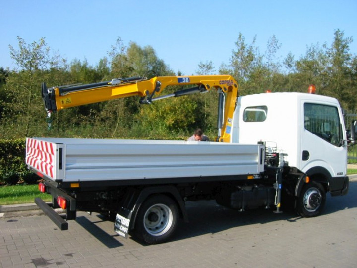 Laadkraan Copma 38.2 met open laadbak op Nissan in Brussel