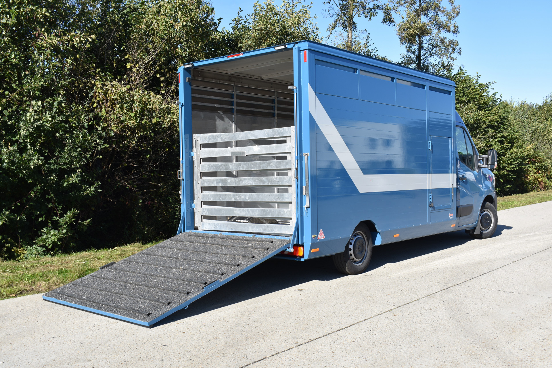 De volledige opbouw werd voorzien in aluminium. De laadramp werd zo breed en lang mogelijk gemaakt. Deze is voorzien van een antislip uitvoering en loopt in één lijn met de laadvloer. 2 ingewerkte veren langs de zijkanten maken het makkelijk om de laadramp manueel te openen en te sluiten.
