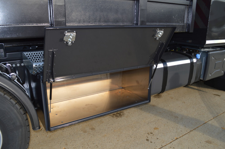 Een 12 Tons containersysteem voor Patrik Beelen uit Diepenbeek. Achter de cabine construeerden wij een magazijn voor het opbergen van zijn materiaal. Deze koffer is volledig op maat gemaakt naar wensen van de klant en zo vlak mogelijk gehouden voor zijn belettering. Het chassis werd opgevuld met gereedschapskoffers en zo groot mogelijk gemaakt om geen nuttige ruimte te verliezen. Wij wensen Patrik alle succes toe met deze knappe wagen!