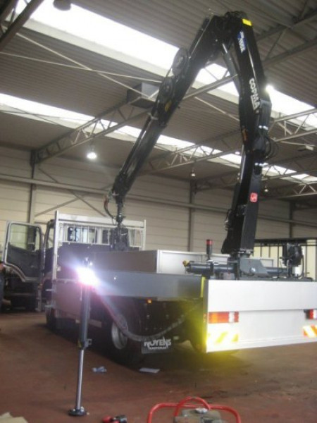 Copma 150A.4 loader crane with open trailer body on Mercedes in Niel