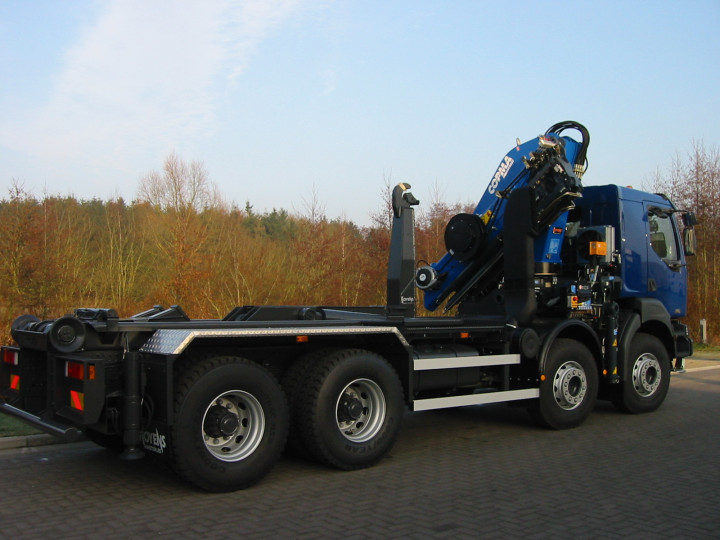 Copma 430.6J4 loader crane with Busi Group container system on Renault in Mol