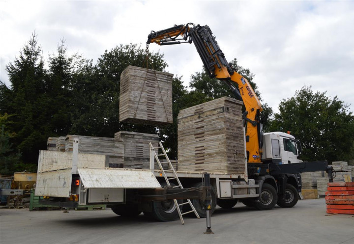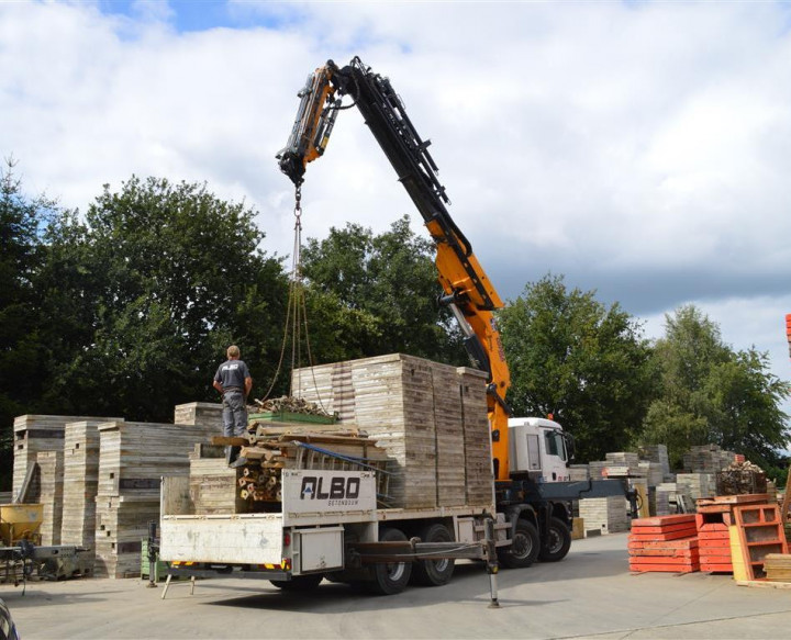 ALBO betonwerken koos voor de COPMA 870.6J6 met open laadbak en zijborden. Aan de zijkant voorzagen wij een opbervak voor de sponnen.