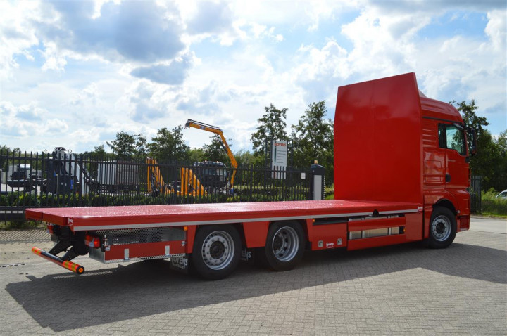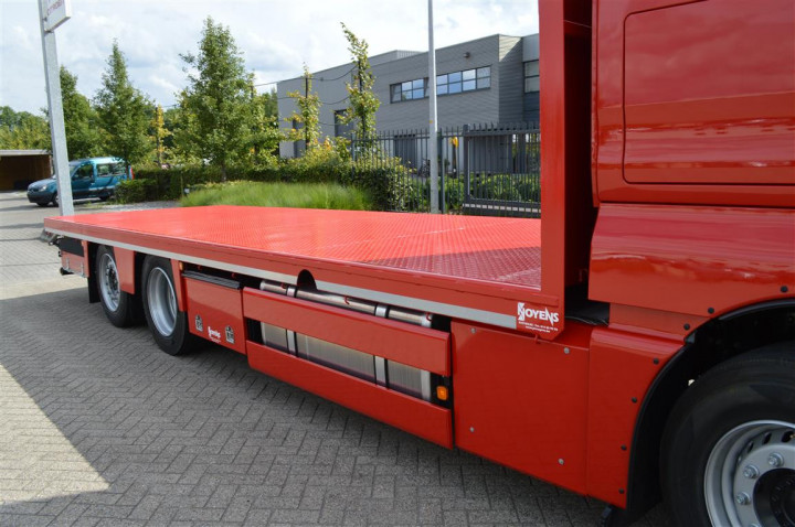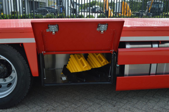 De open laadplateau werd zo laag mogelijk opgebouwd voor strotransport. De laadvloer kan met 1 meter verlengd worden. Het chassis werd oneraan opgevuld met gereedschapskoffers.