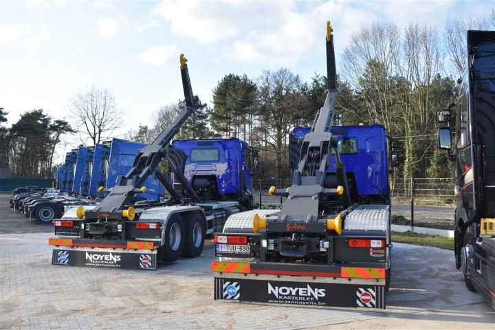 2 Spikslinternieuwe containersystemen voor GRCT uit Herenthout. De wagens werden voorzien met een 20T containersysteem met hydraulisch uitschuifbare bumper. Naast het chassis werd een gereedschapskoffer op maat + zeilrek geplaatst. Het containersysteem is sterk, laag opgebouwd en bovendien licht in gewicht.