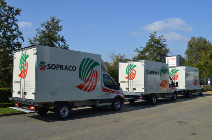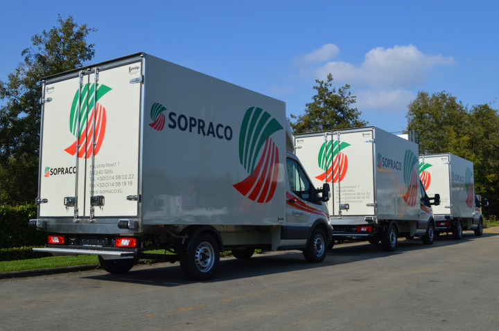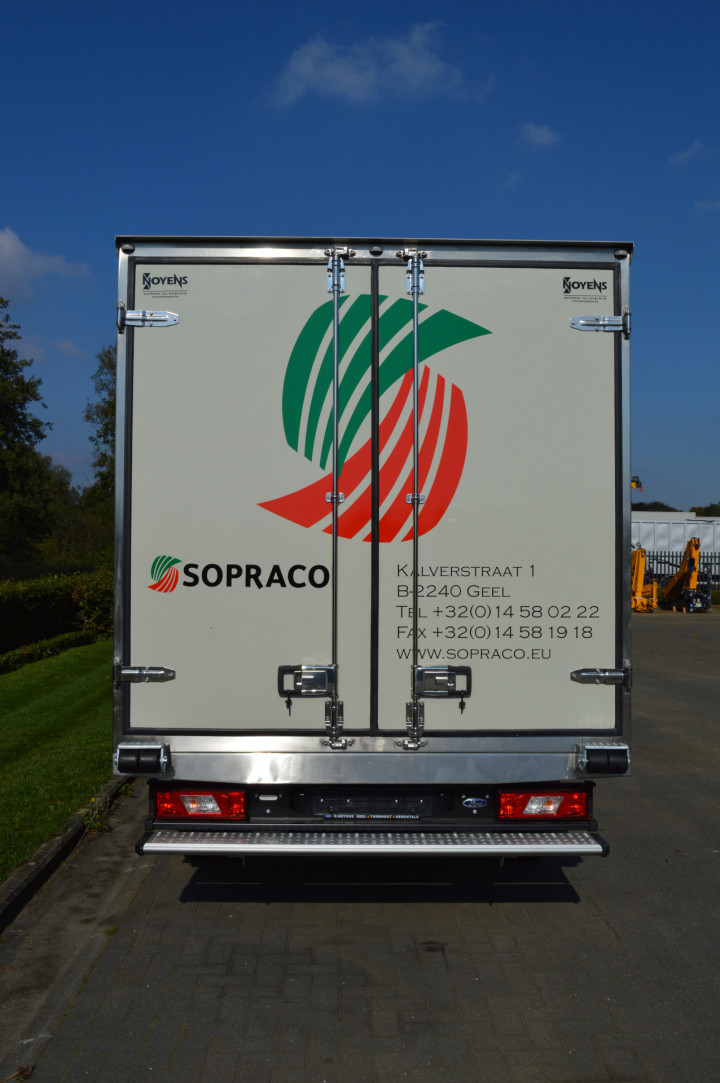 SOPRACO gaf ons het vertrouwen voor de opbouw van deze 3 nieuwe FORD voertuigen. Wij monteerden deze frigolaadkasten uitermate geschikt voor het transport van gekoeld vlees. In de laadkast werd een stootplint en ingewerkte bindrails voorzien. Het binnenlicht springt automatisch aan d.m.v. een bewegingssensor. Achteraan werkten wij het voertuig af met een opstaptrap en stootrollen. Na het monteren van de spoiler en de belettering zijn deze wagens klaar voor aflevering!