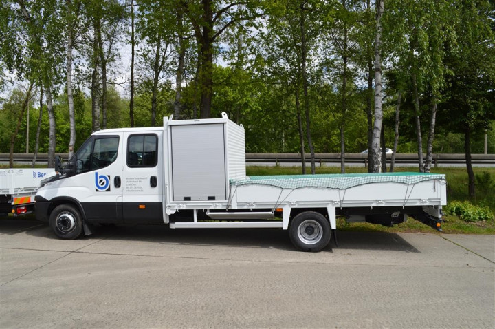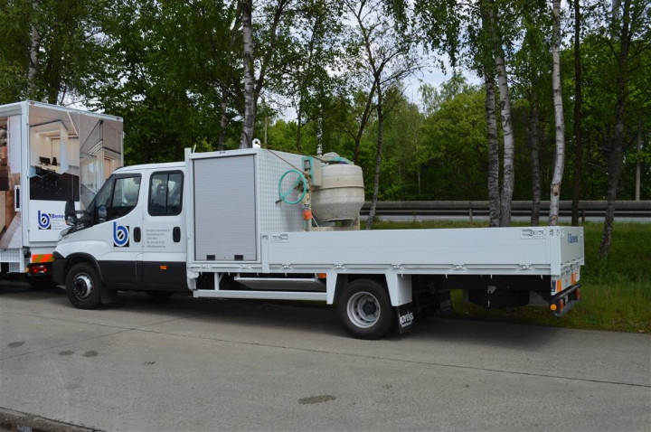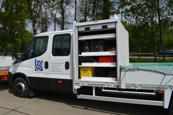 Wij bouwden hun IVECO DAILY op met een open laadbak en gereedschapskoffers naast het chassis.