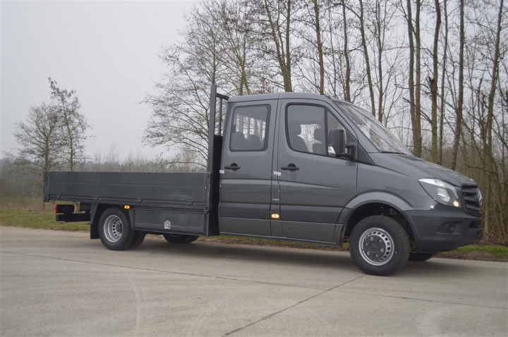 Wij bouwden hun Mercedes Sprinter op met een open laadbak en gereedschapskoffers naast het chassis. Om een langdurige bescherming te bieden tegen corrosie werden de stalen constructies gemetalliseerd. De opbouw werd gelakt in metallic kleur.