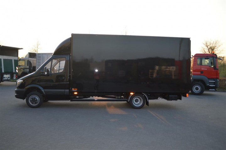 Een mooie levering voor onze buren in het Biezenveld. Een gesloten laadkast gelakt in metallic kleur met Dhollandia laadbrug. Intern voorzagen we houten bindlatten en een stootplint.