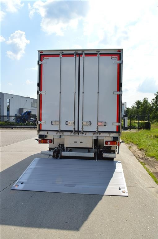 Voor Risa uit Lille bouwden wij deze versterkte geïsoleerde laadkast. Ze heeft een versterkt dak om het hangend vlees te kunnen dragen. Ook het railsysteem werd door ons gemonteerd. Achteraan werd een Dhollandia laadbrug gemonteerd.