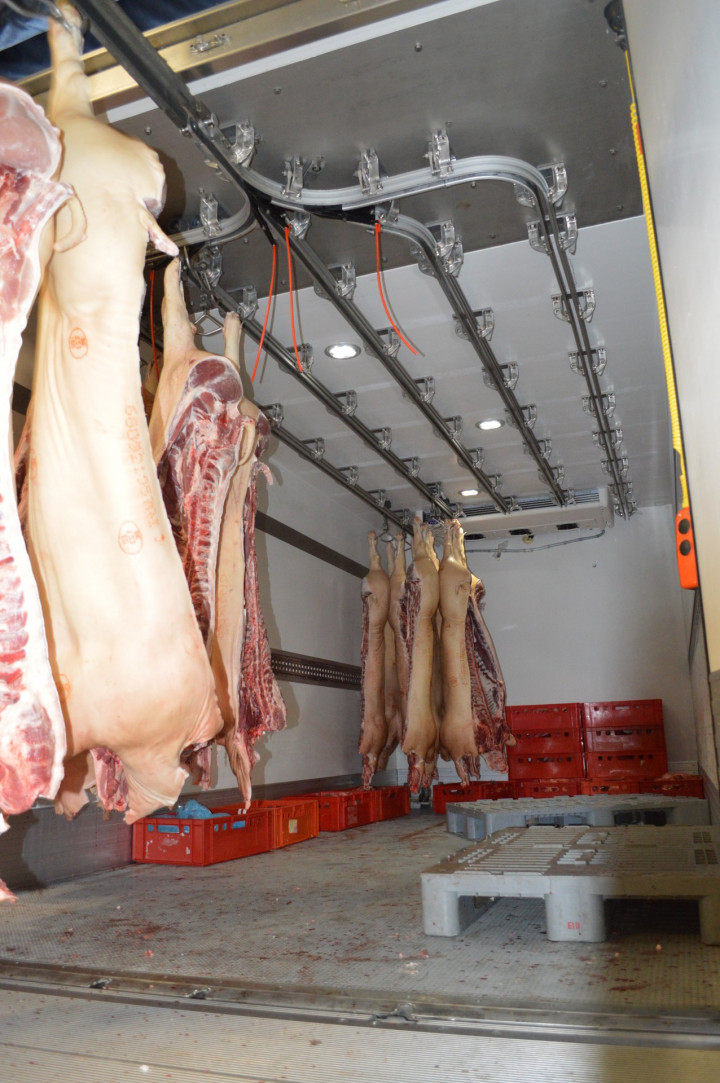 Caisse de chargement frigorifique pour le transport de viande suspendue sur Renault à Lille
