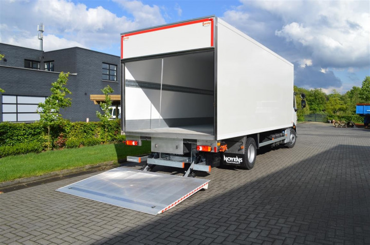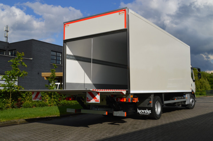 Deze geïsoleerde laadkast werd voorzien van een geïntegreerde stootplint en bindrail. We monteerden een Dhollandia laadbrug voor het laden van eieren.
