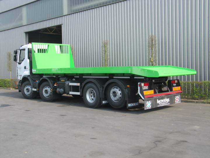 Voor Lauwereys bouwden wij hun Renault voertuig op met een 30T containersysteem. Naast het chassis werd een zeilrek op maat gemaakt. De haak van het containersysteem is verstelbaar (knikarm). Vooraan werd een extra vergrendeling voorzien.