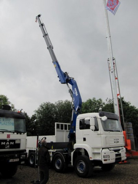 Grue de chargement Copma 300.4 avec benne de chargement ouverte sur MAN à Ham
