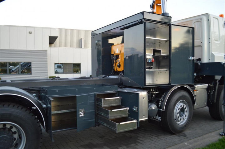 Onze Copma 360.5 laadkraan uit de TOP RANGE gecombineerd met een achterwaartse kipper ! Een totaalpakket inzetbaar voor wegwerkzaamheden en grondwerken. Deze kan écht overal werken dankzij het geïnstalleerde stroomagregaat 220/380V en hydraulische pikeur. Zet het licht maar op groen !