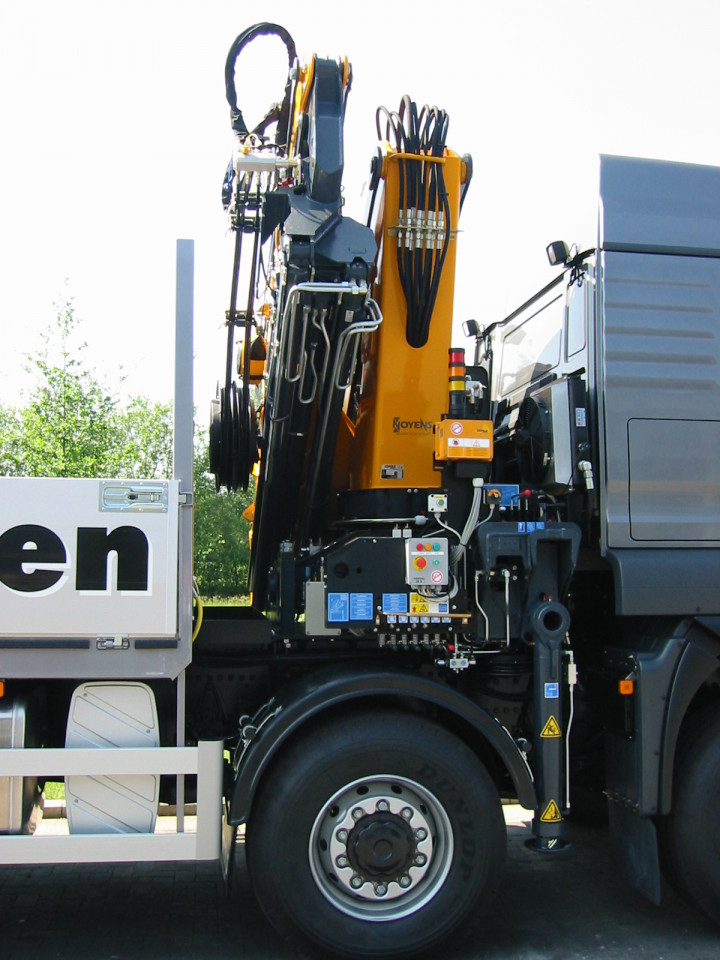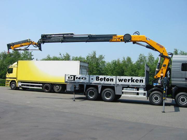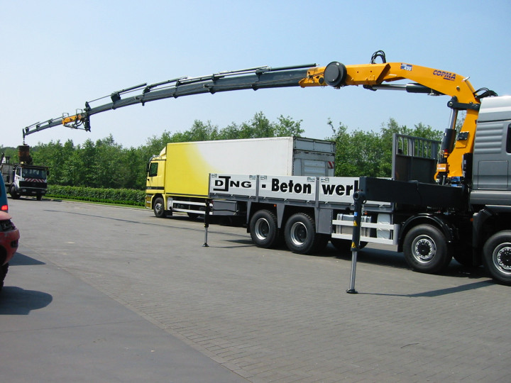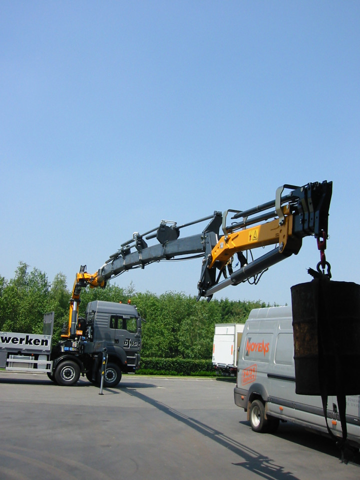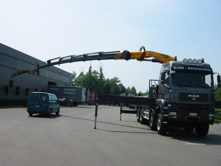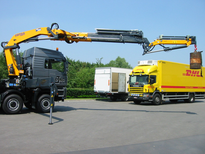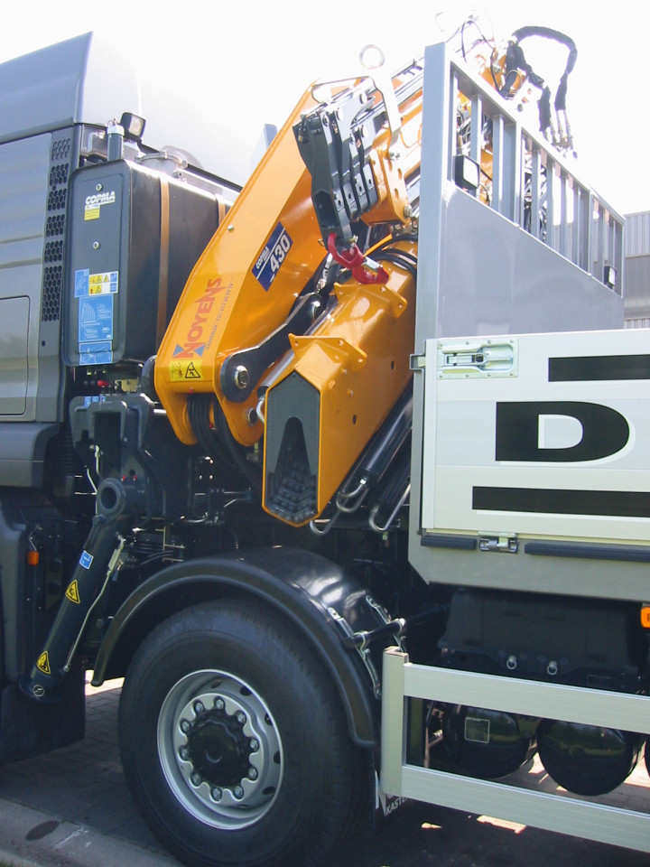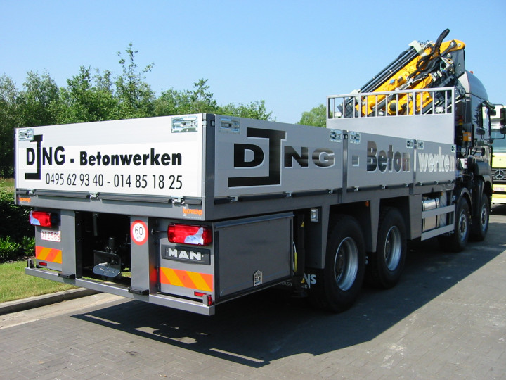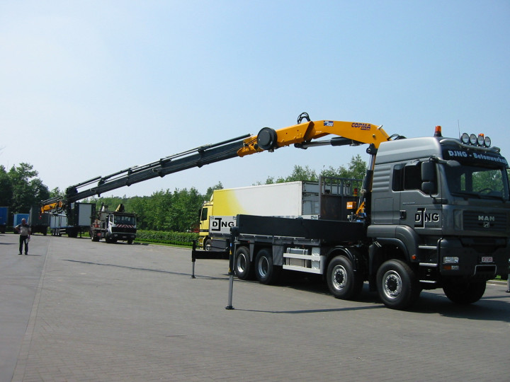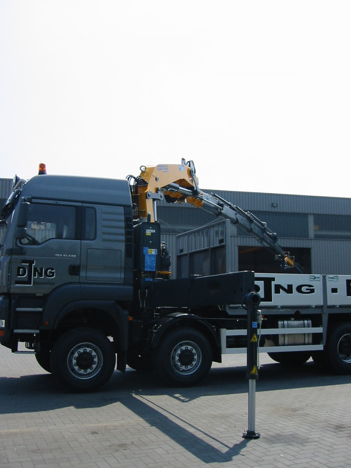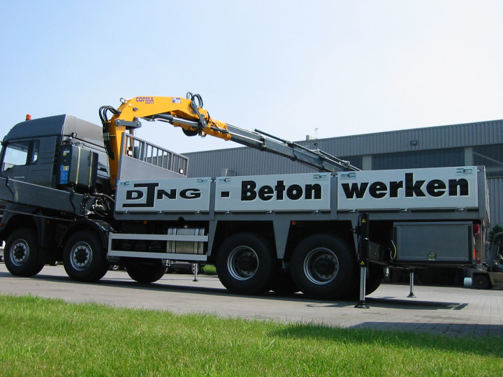 DJNG Projects uit Kasterlee met opbouw COPMA laadkraan 430 en open laadbak met zijborden.