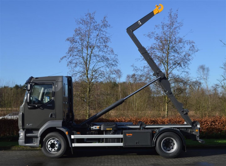 Een 10 Tons containersysteem opgebouwd op een DAF voertuig. Wij verzorgden ook de gereedschapskoffer naast het chassis.