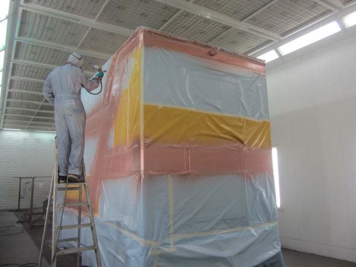 Nous disposons de notre propre cabine de peinture afin de terminer un camion entièrement, y compris la construction, dans les couleurs souhaitées. Les dimensions de notre cabine de peinture sont suffisamment grandes pour y accommoder un semi-remorque entier.