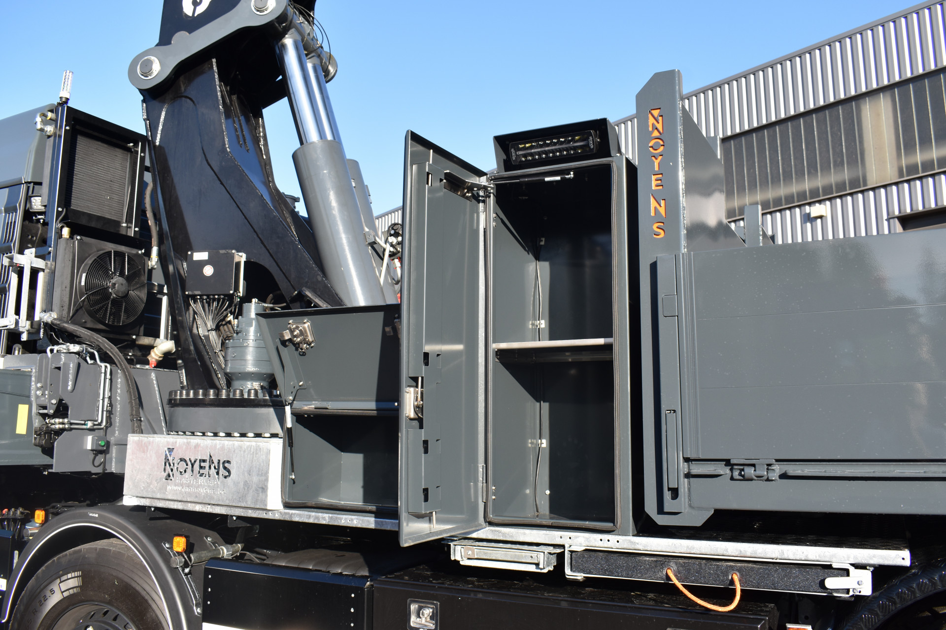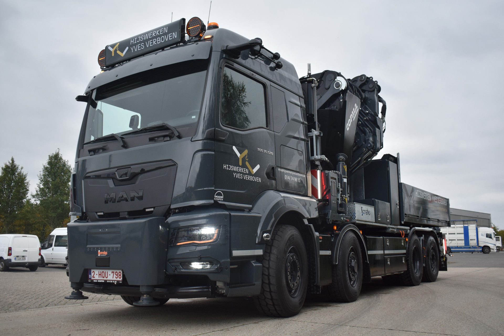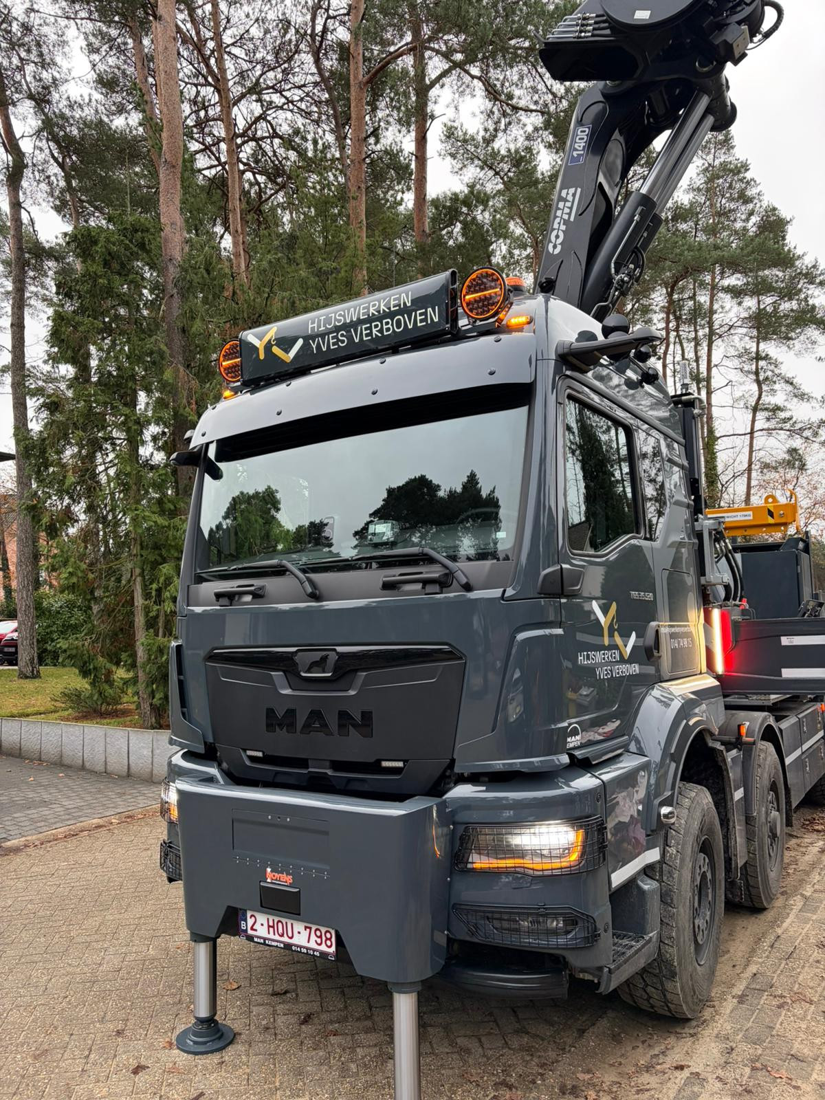 Hijswerken Yves Verboven nam recent zijn allereerste nieuwe kraanwagen in gebruik – een prachtige opbouw op een MAN-chassis. Voor maximale stabiliteit bij hijswerk voor de cabine werden vooraan 2 steunpoten gemonteerd, zodat ook dit type werk veilig kan uitgevoerd worden.