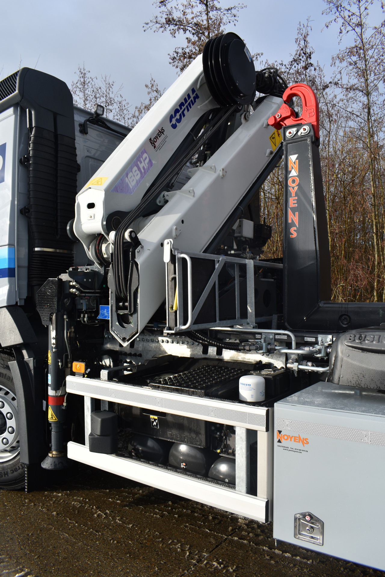 Voor Hegrola realiseerden we een nieuwe opbouw waarbij hun bestaande kraan een nieuwe positie kreeg. De kraan werd gedemonteerd van de container en vervolgens gemonteerd op het vrachtwagenchassis achter de vrachtwagencabine. Deze configuratie werd gecombineerd met een robuust 25-tons containersysteem.
