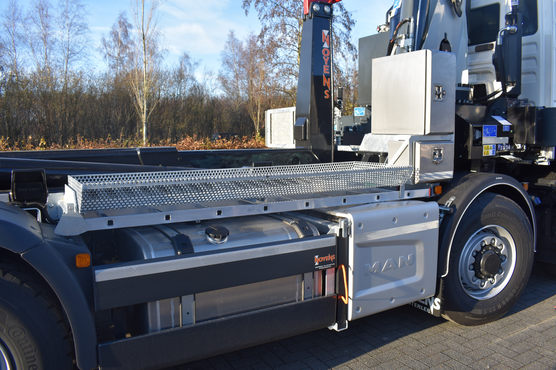 - Handige opbergkoffers naast de kraanarm, gemonteerd op maatwerk verzinkte steunen