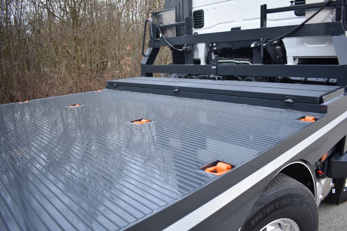 Open laadplateau met hydraulische oprijrampen op IVECO in Hoeilaart