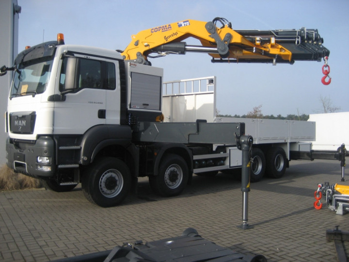 Copma 870.6J6 loader crane with open trailer body and sides on MAN in Lichtaart