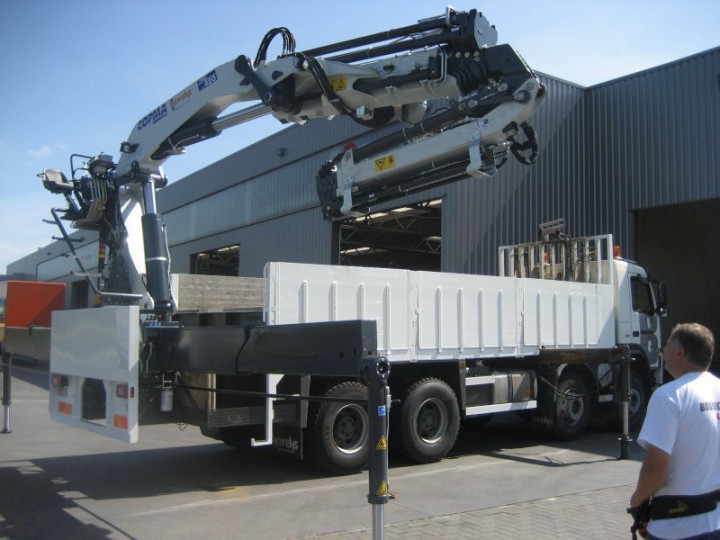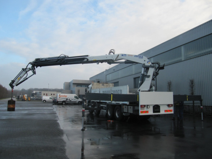 Grue de chargement Copma 420.5J4 avec benne de chargement ouverte et côtés fixes sur VOLVO à Turnhout